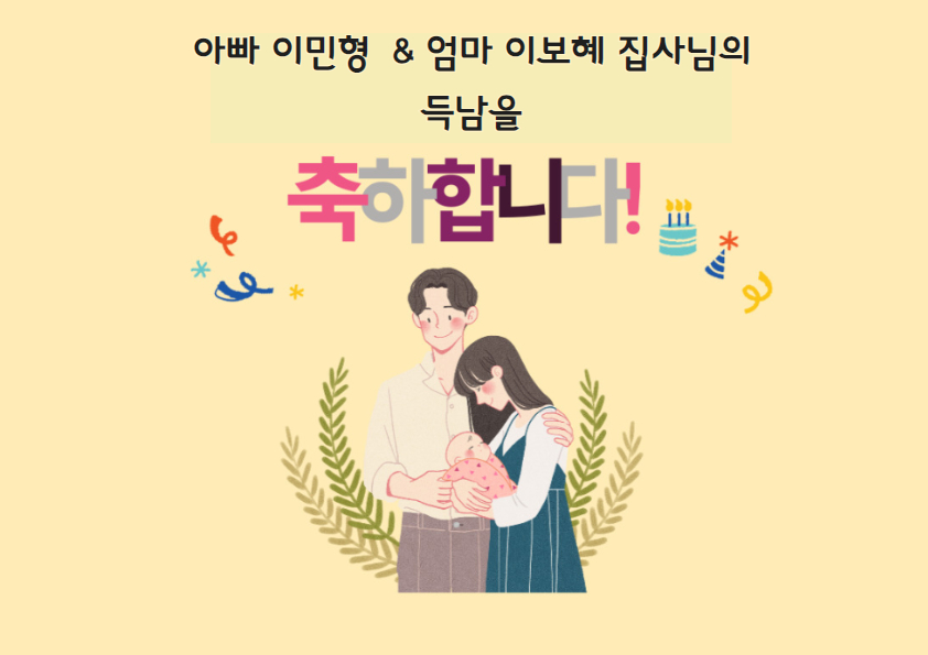 아빠 김종범 성도와 엄마 정신애 성도의 득남을 축하합니다.